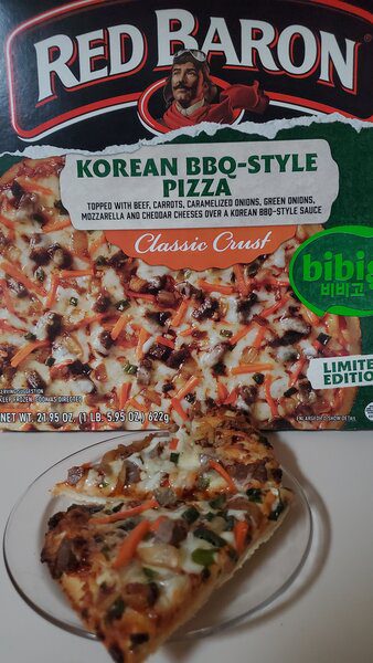 I am generally familiar with the Bibigo brand of Asian foods in the frozen food and Asian food aisles at the grocery store. I haven’t strayed too much into the Red Baron line of frozen pizzas, since they have typically stuck with their tried and true mid-to-lower priced lines. I was shocked to see a whole endcap at Kroger with these pizzas. It’s an interesting combo. The BBQ sauce is a little spicier than I expected, but not in an uncomfortable way. The beef had some Korean BBQ texture and the veggies had a decent crunch. I’m not a fan of their crust. It borders on cardboard thickness. Add a little extra mozzarella and you have a decent snack.